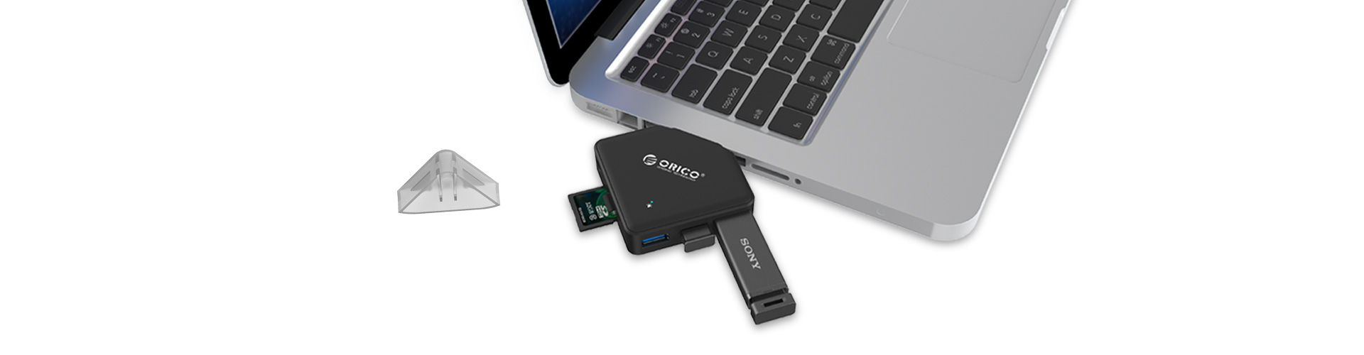 ORICO C3TS侧面采用双卡槽设计,贴合广大用户的需求,为您的New Macbook直接读取TF/SD卡内的影音文件等资料。