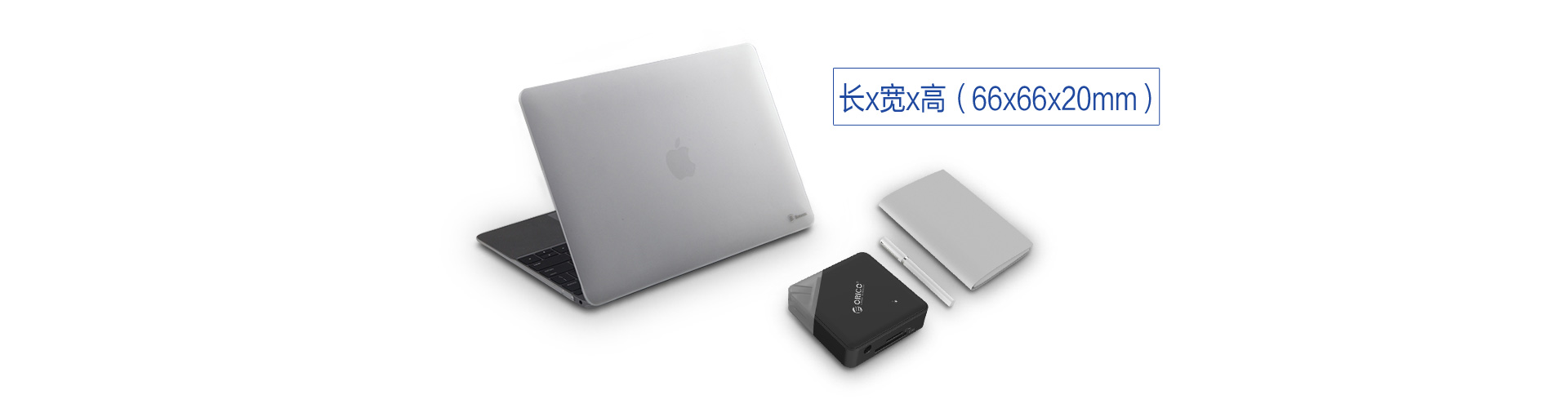 产品尺寸仅66*66* 20 mm ,盈盈一握的体积,携带出门不占空间,与您的New Macbook融合的恰如其分,打造您的口袋式便携办公娱乐生活。