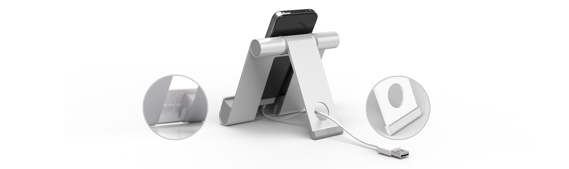 ORICO打破传统手机平板支架功能设计理念,支架底部带有空位可容纳充电接头,满足您多横放或竖放的使用需求。