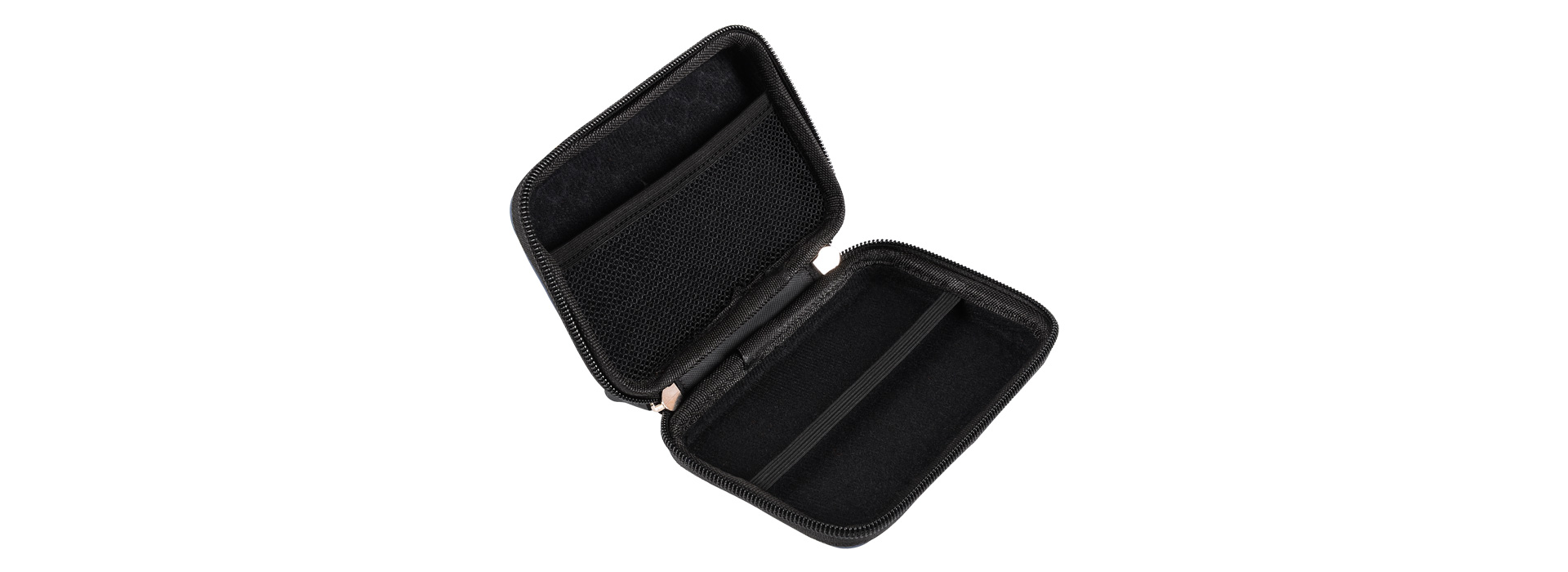 收纳包内部设计非常合理,大空间主体可收纳2.5寸硬盘,并设计弹性好的护带,保护硬盘不晃动、不滑落,在盖面上也增加了网面隔层设计,可收纳与硬盘搭配的数据线,或者耳机、U盘等,对空间进行了利用,做到小身材大容量。