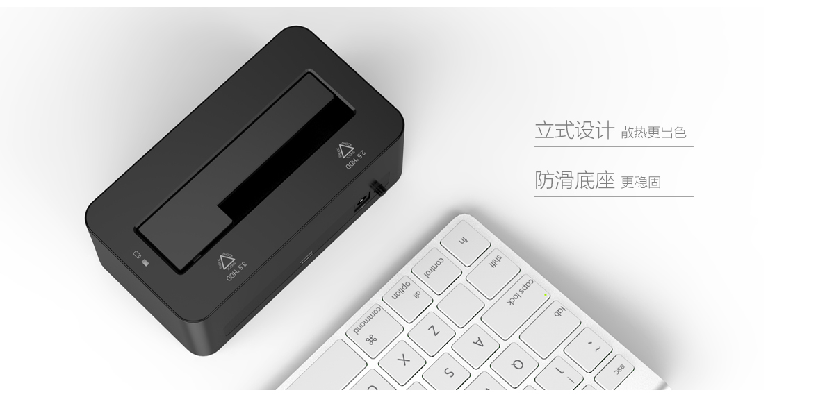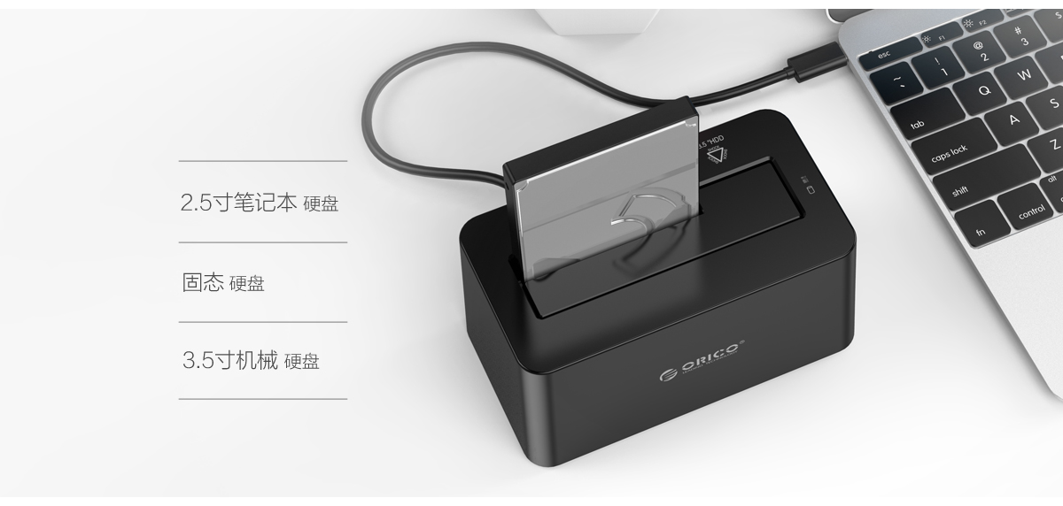 延续ORICO一贯简约易用设计理念,6619C3对于您的SATA硬盘&SSD的使用将无需工具,支持热插拔,即插即用。。