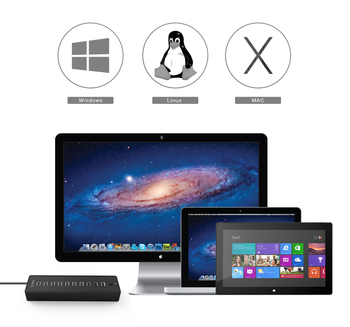 为了给更多USB设备提供高速传输条件,ORICO 推出10口高速集线器,接口布局合理,运用互不干扰,再多设备也一并满足,同时也保护了您电脑原生接口。