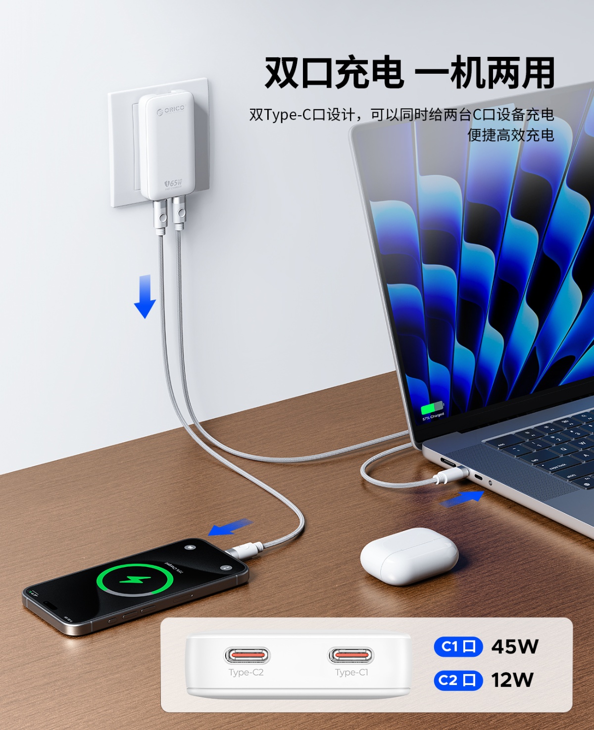 C1:5V/3A,9V/3A,12V/3A,15V/3A,20V/3.25A 65W MAX/C2:5V/3A,9V/2A,12V/1.5A