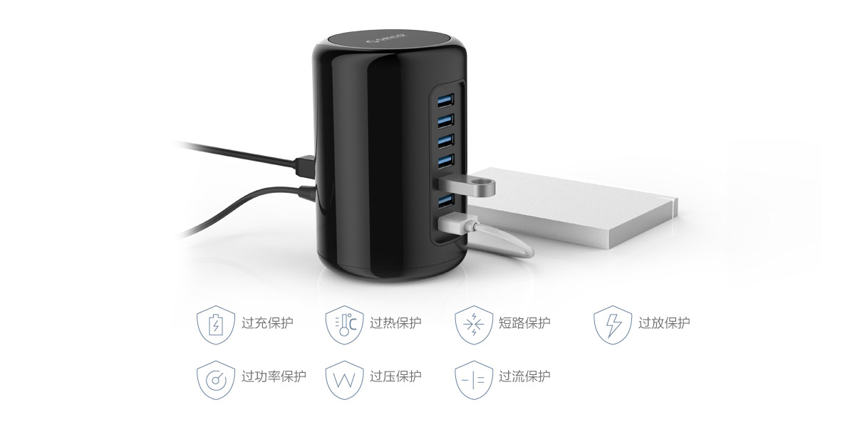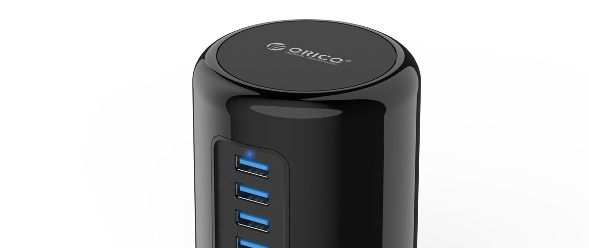 独特的圆柱型一体化设计再加上沉稳的漆黑主色,无意散发出一股简约与稳重相结合的气息。与苹果产品所追求的简约时尚理念产生艺术性的碰撞。如此一款产品,相信对于部分文艺范的用户而言,在视觉讨好程度上来说绝不亚于一些精美的桌面摆设品,何况ORICO RH7-U3还是个功能实用的数码设备。