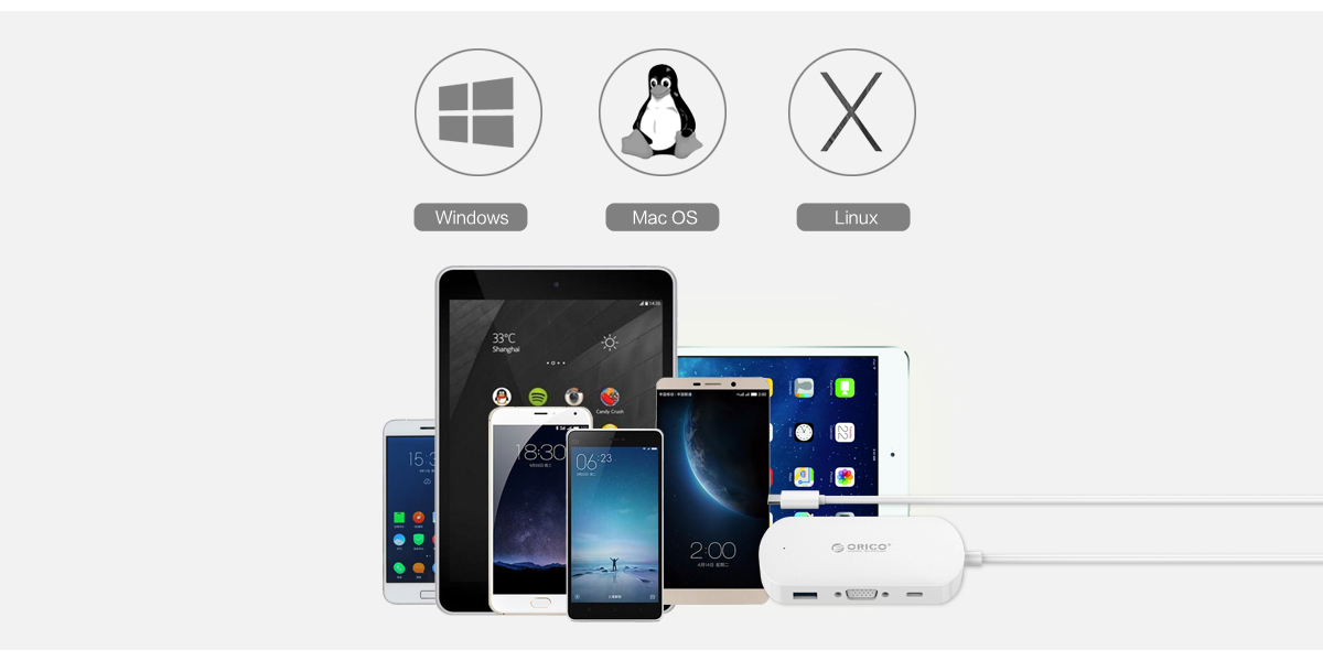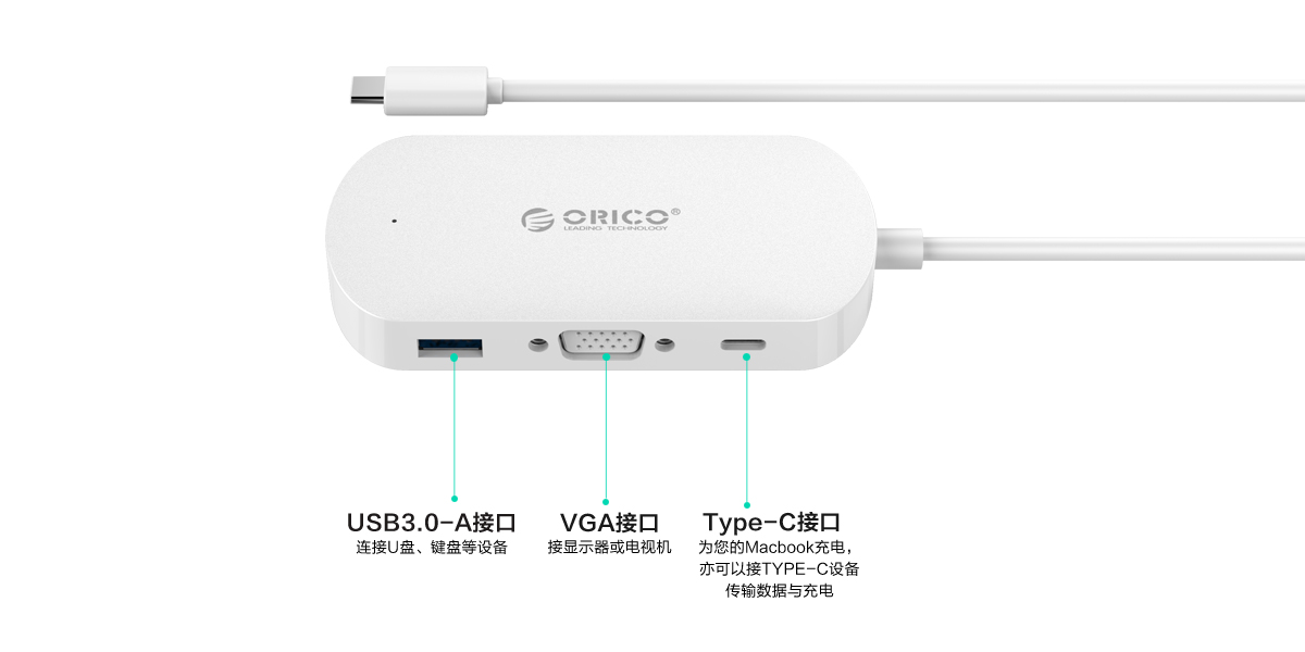 全新的Macbook为了更薄的设计体验,只保留了一个Type-C接口,根本无法满足您众多数码设备的需求,ORICO TCV1一次扩展出三种接口,解决您的使用窘境,是具有前瞻性的用心设计。