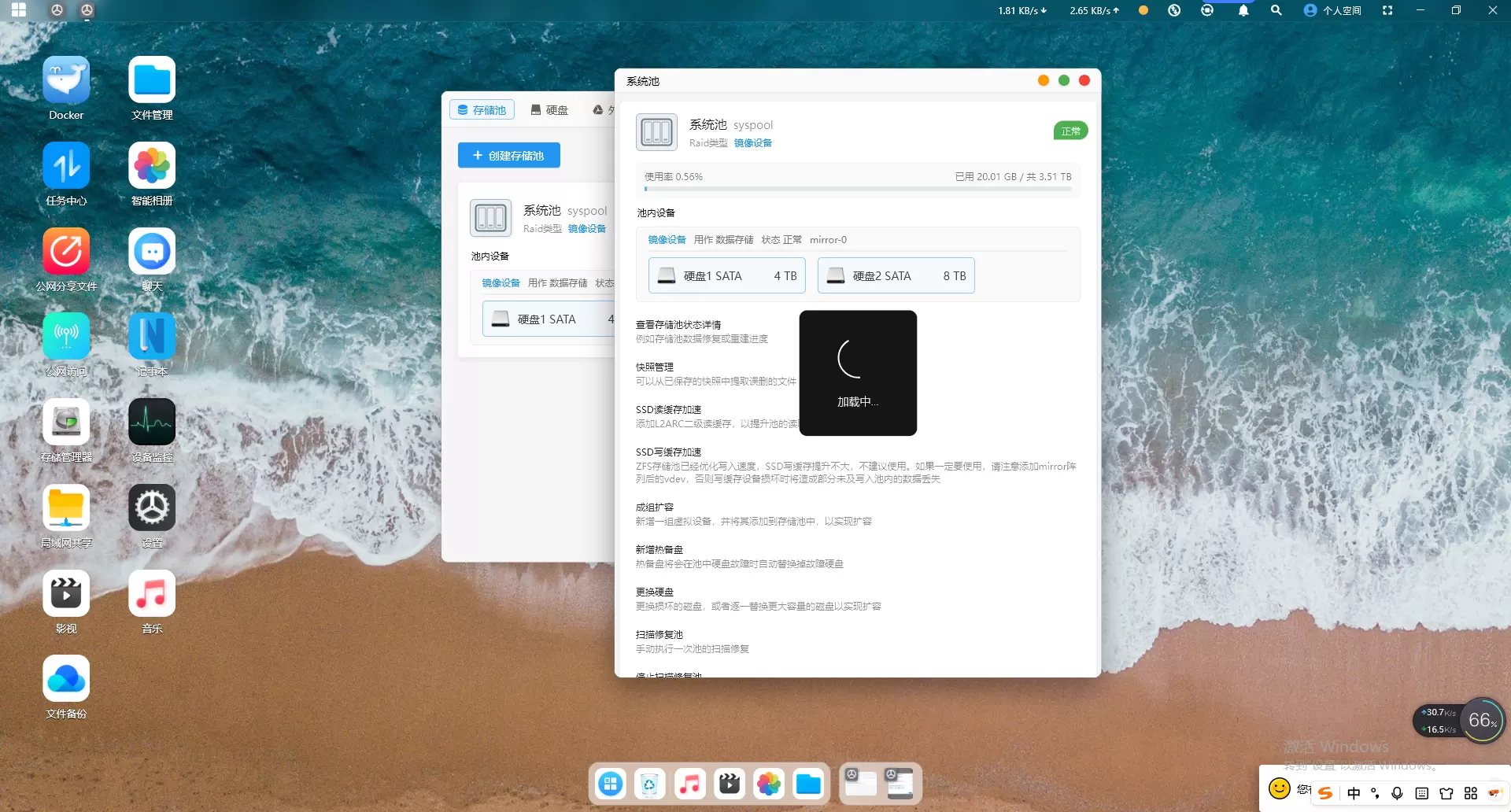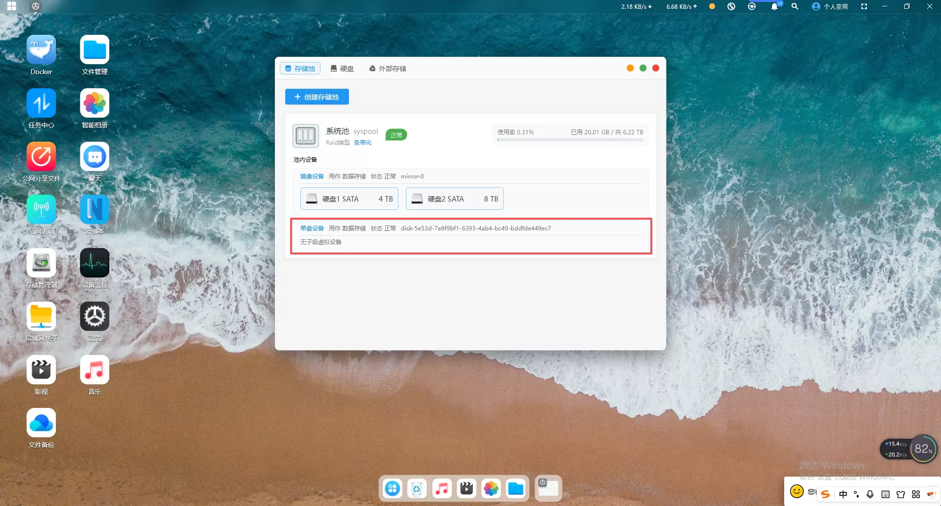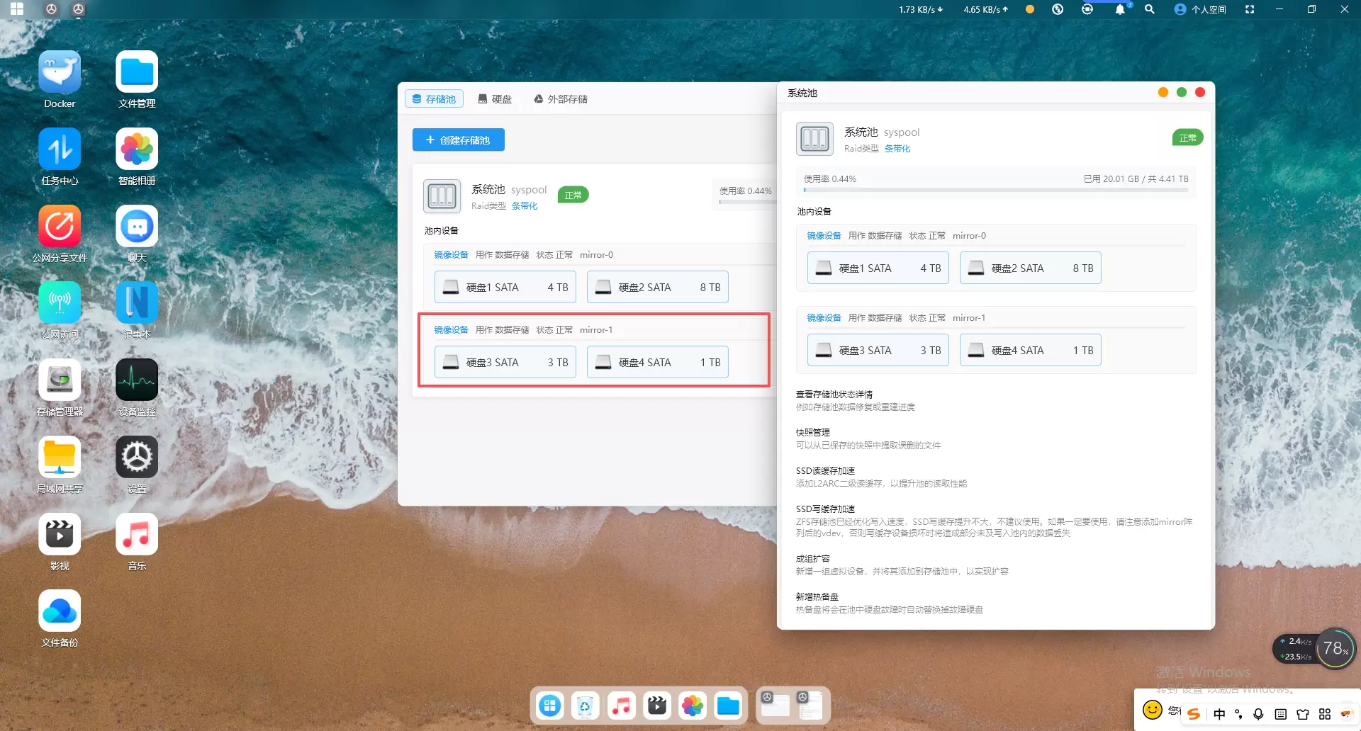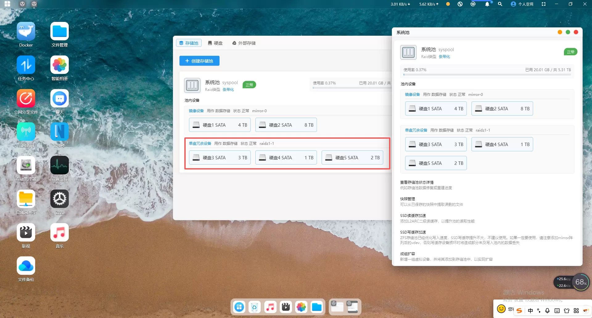 打开赛博云APP-存储管理器-存储池,点击“系统池”-成组扩容