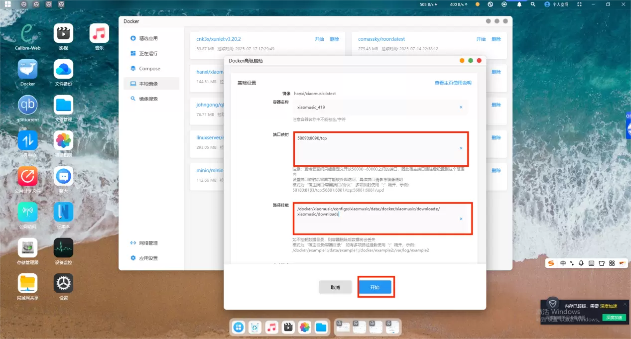 ④xiaomusic需要挂载配置目录和下载目录,参考其主页说明,可以这样设置: