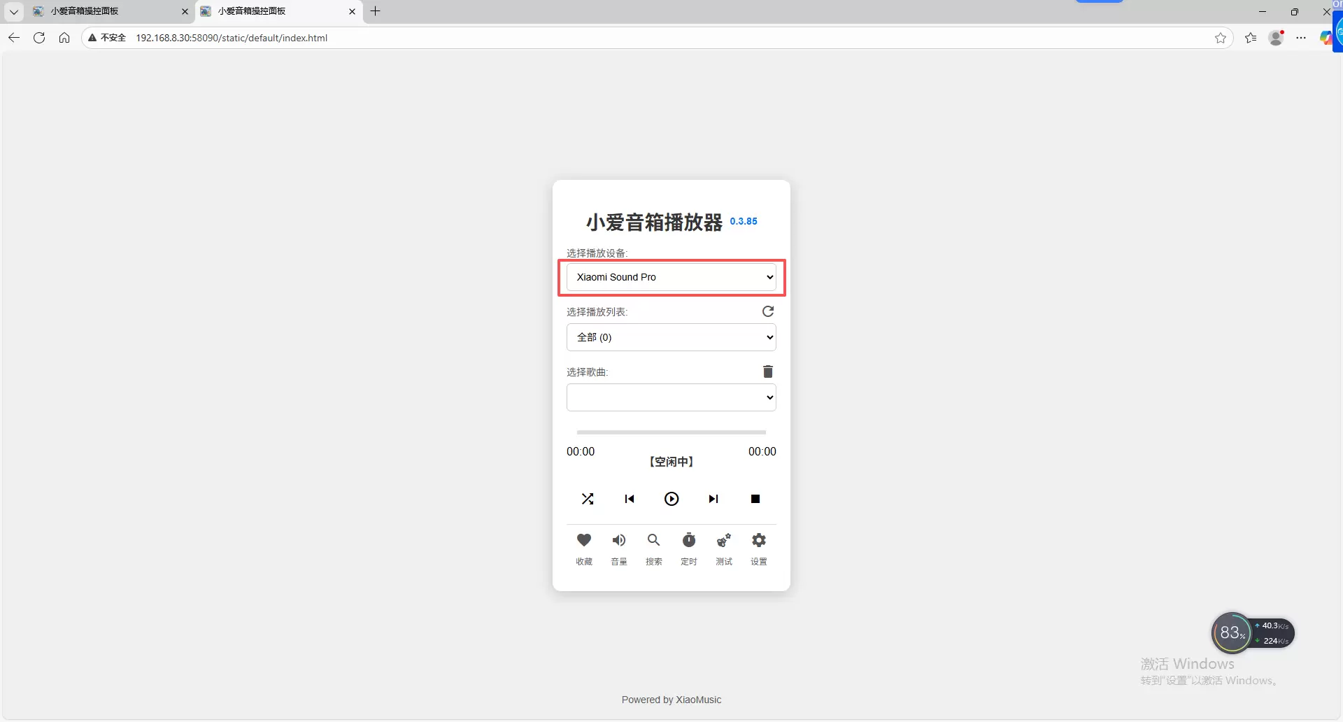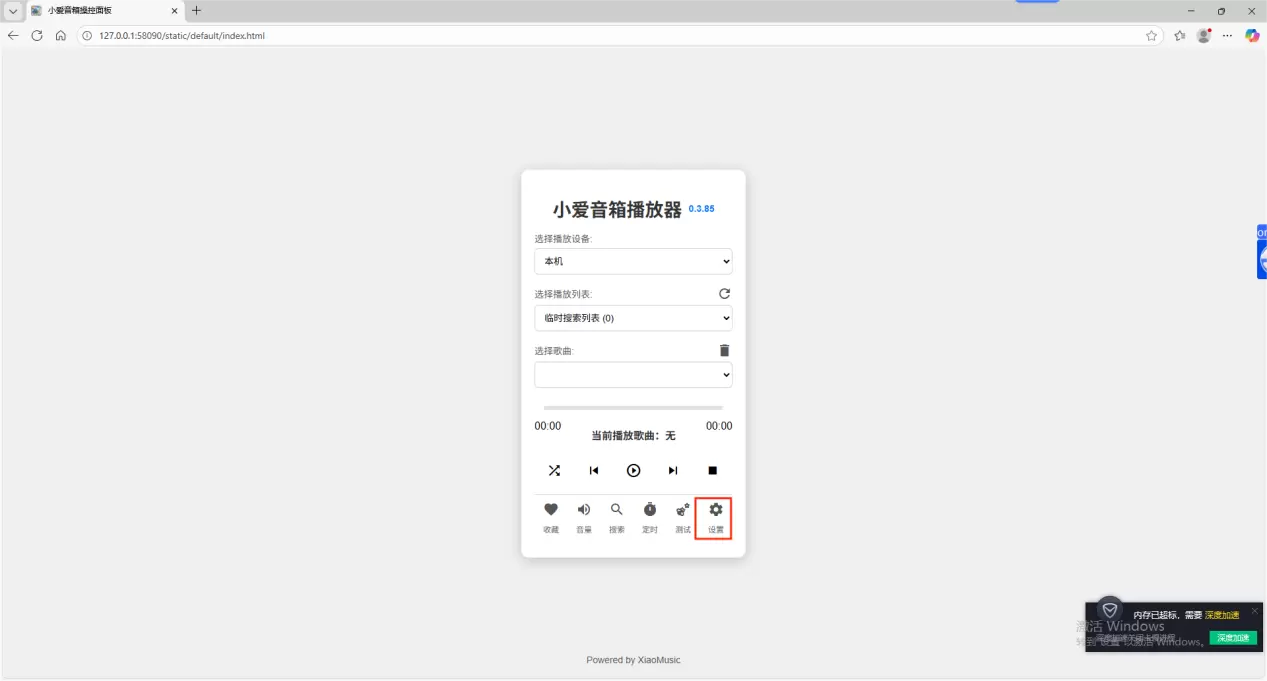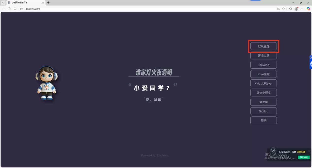5、进入xiaomusic界面,点击默认主题,开始配置小爱音箱