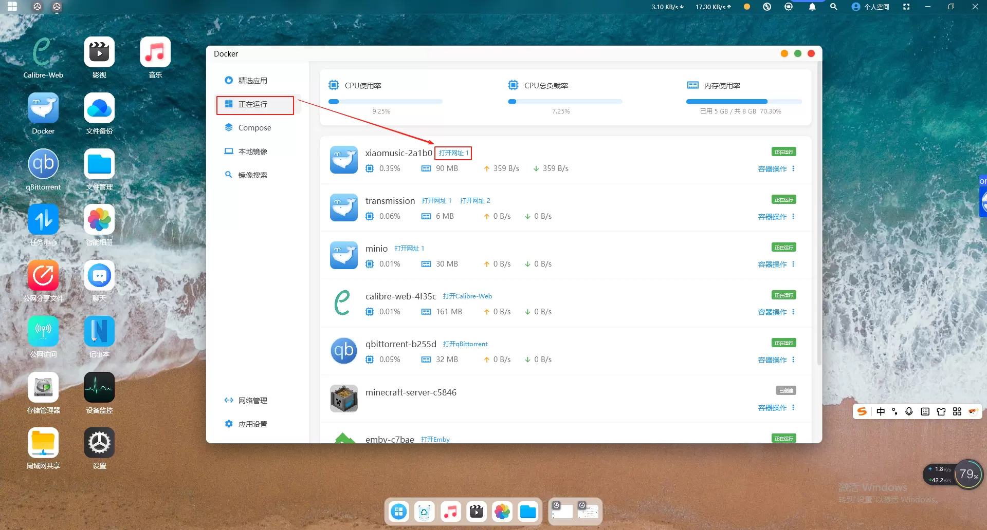 4、配置好镜像后,回到正在运行单击打开网址会自动跳转至webUI界面