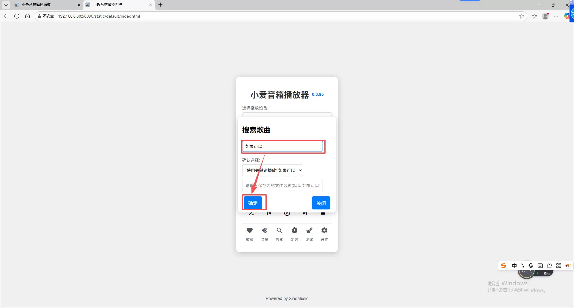 现在nas里面是没有音乐的,点击“搜索”输入你需要播放的音乐名称,点击“确认”后刷新一下页面,音乐文件就自动下载到你的nas里了
